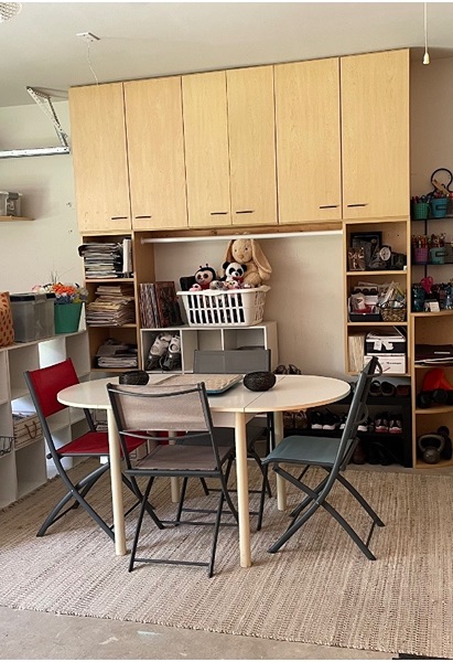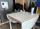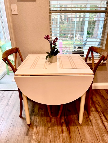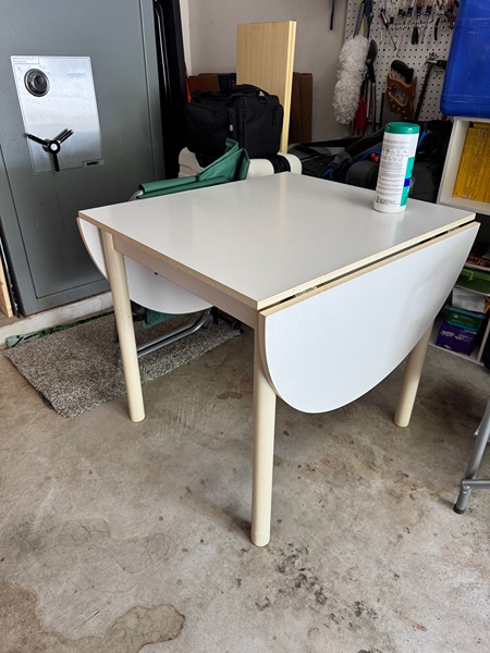 White sturdy, durable kitchen or craft table. Sides fold down.