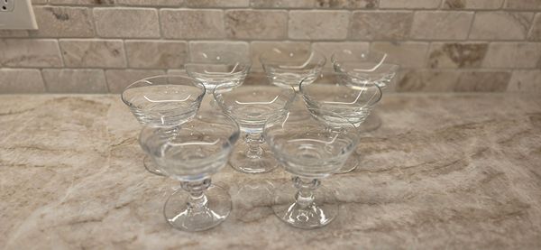 Val Saint Lambert Crystal State Plain Saucer Champagne Glasses