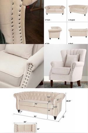 Set of a Beige Velvet Loveseat & Wingback Chair Solid Wood, Heavy Duty (900 lb Capacity)