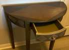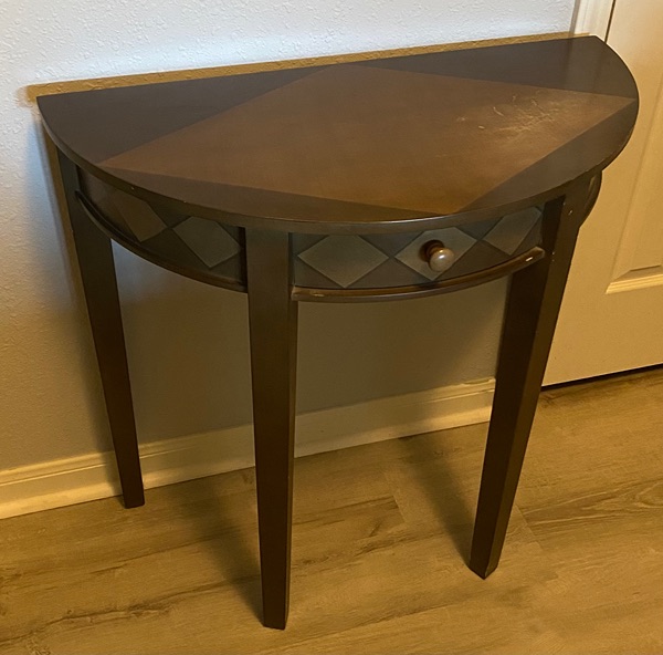 Half round table with minor markings. Can be covered, stained or painted.