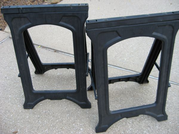 4 saw horses. heavy plastic. rated at 250 lbs ea. $4 ea. $16 for all four. can arrange for porch pick-up