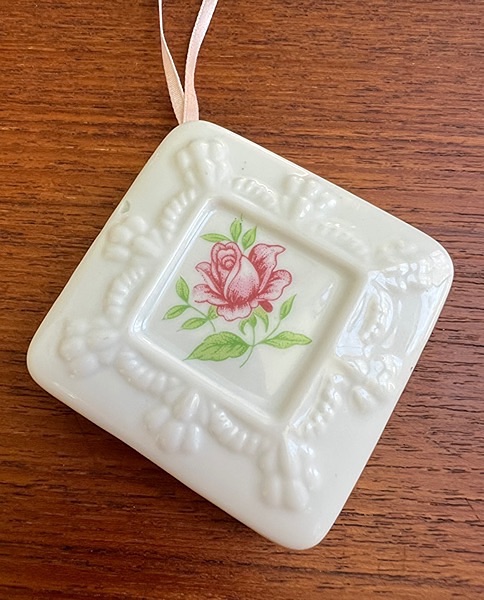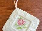 • Pomanders were historically used to hold perfume or scents to ward off infection or unpleasant odors. Approx. 7" with ribbon, 2" ceramic square...