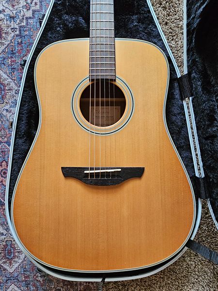 Lightly used Takamine GS330S dreadnought acoustic guitar with original hard case. Solid spruce top, mahogany back/sides, warm tone and good projection.