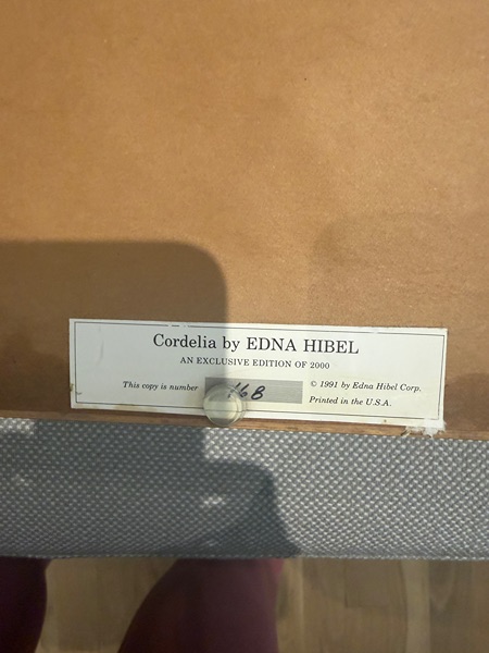 Cordelia / Edna Hibel Signed & Dated Lithograph Framed Print