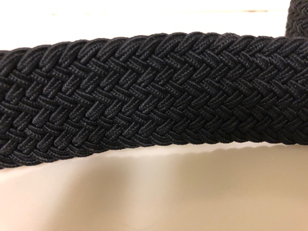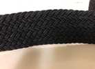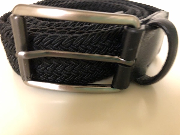 Size 42. Made of a black material. Holes are not punched in belt which allows you to place them individually. Good condition. Asking $2.00.