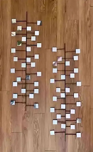 Measures 35 1/2” x 11” Ready to hang horizontally or vertically, side by side, off-set or stacked to make one long piece. Mid-century modern cool!