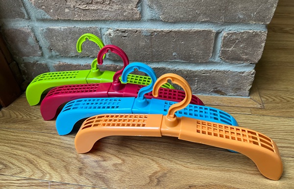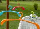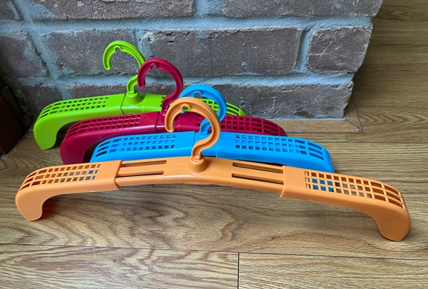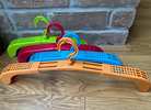 Bandwagon Adjustable Clothes Hangers Swivel Hook Multi Color Set of 4. A Neater Way to Dry Clothes These hangers not only adjust to fit a wide range of clothes, but they also have holes to help wet clothes dry quicker. Pack of 4 (bright, multicolor hangers). Swivel hook with a notch for secure hanging on clotheslines. Expands to 21"W (14-3/8"W)...$15 firm