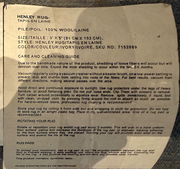 Set of 2 : 3' X 5' 100% Wool / Laine Rugs from Portery Barn. Never used.