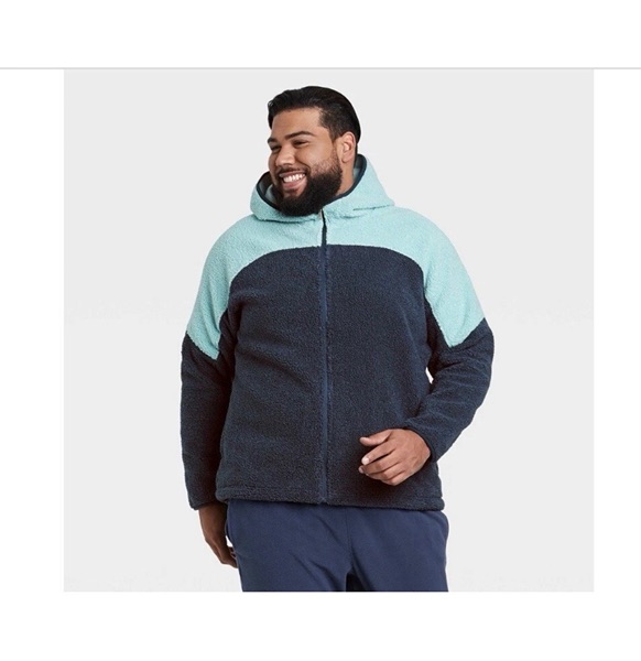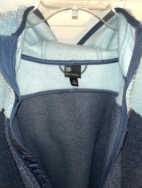 Men's size XXL, all in motion brand, two-toned blue hooded sweatshirt/jacket. Full zip, side pockets, high collar, attached hood. New with tags from smoke free home. $12