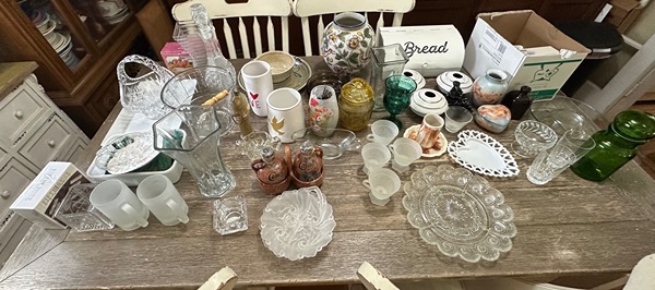 Vintage Glassware Indiana Westmoreland Anchor Hocking plus others prices vary let me know if you’re interested in some or all and stock your inventory. More available.