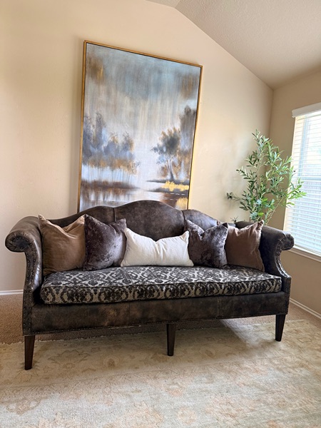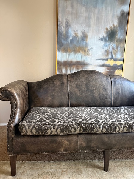 This beauty is in GREAT condition. There’s no rips or tears. Curved back frame. Bench cover is very well made and It is washable- Theres no stain, signs of minimal wear. 9” legs (removable for easy transport) studded details along the trim. Theres a few scuffs on the backside. It’s REAL leather. Just been cleaned and conditioned