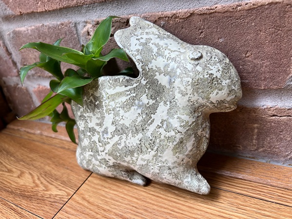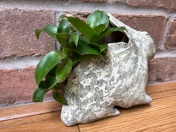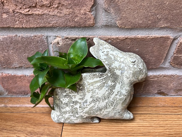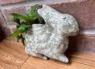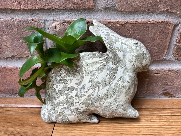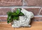 Terracotta glazed rabbit-shaped wall planter with live basket plants.  Approx. 8” tall x 9” wide…$30 firm