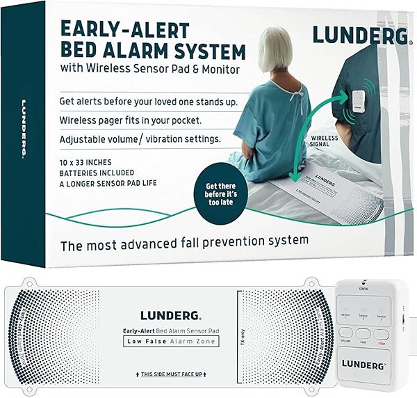 Lunderg Early Alert Bed Alarm for Elderly Adults - Wireless Bed Sensor Pad & Pager - with Pre-Alert Smart Technology - Bed Alarms and Fall Prevention for Elderly and Dementia Patients