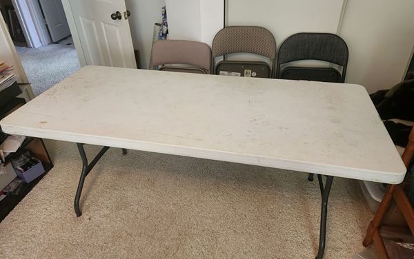 Great for extra guests, holiday parties, church groups and picnics. These are in good condition and the chairs are like new. Tables work great with slightly stained tops (not bad but not perfect so need table cloth for fine dining). I'm done with picnics so selling as a bundled deal at less than half of full price.
