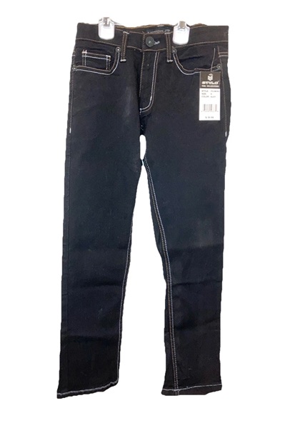Boys size 8 black skinny jeans from Stylo Dnm Engineering brand. Features 5-pocket design, button/zip closure, and light contrast stitching. New with tags from smoke free home. $12