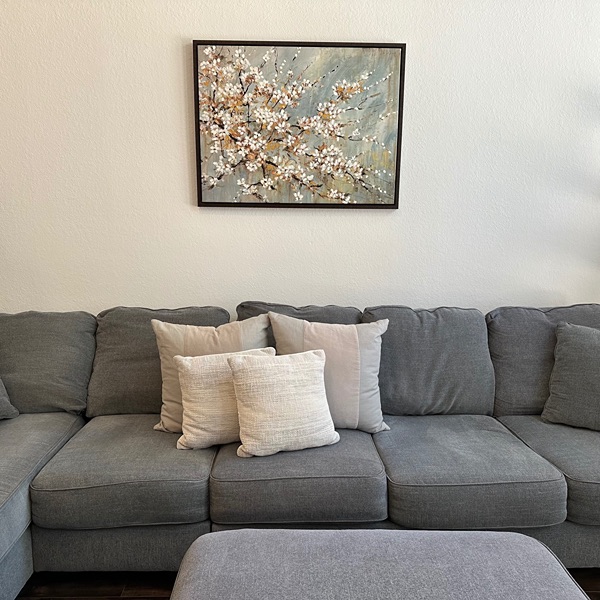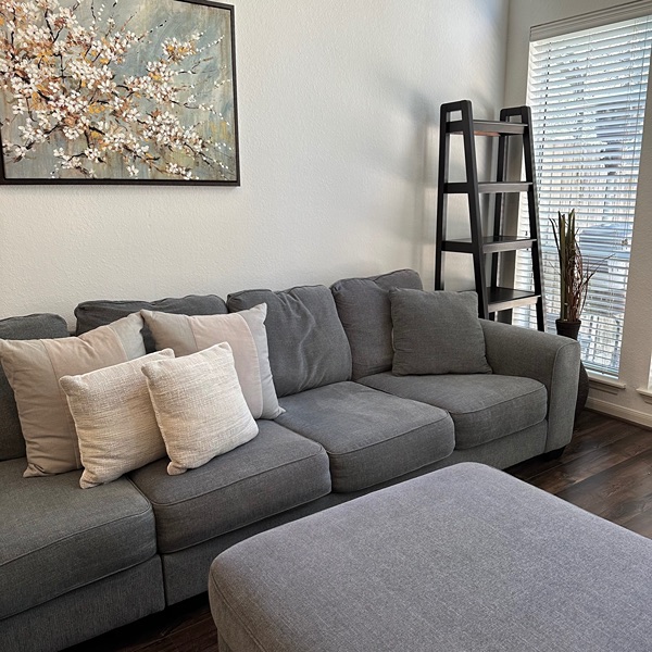 Sectional , bookcases, TV, and wall art. No pets and non smoker.