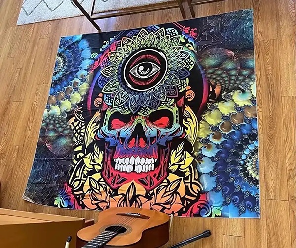 Vibrant, large tapestry with a skull design. Approx. 58” x 49”…$10 firm