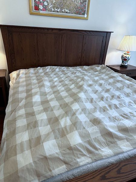 $20 Tan white and duvet cover and insert (checkered pattern on 1 side, striped on the other)