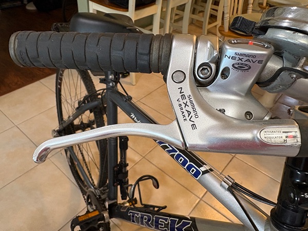 7700 series multi track men’s 28 inch trek bike with alpha aluminum frame, multi track series, equipped with medium high level components including a suspension seat post and adjustable stand for adult comfort plus tool kit pouch and water bottle holder. Does have some wear but works great.