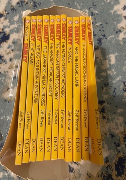 The books that are in the box have never been read and like brand new, the box for them is not in good shape because it was stuffed in the bottom of my sons closet but could be taped to salvage. We also have 4 additional random gently used Stanley books to go with the lot. Almost $70 retail, Woodlands 77381