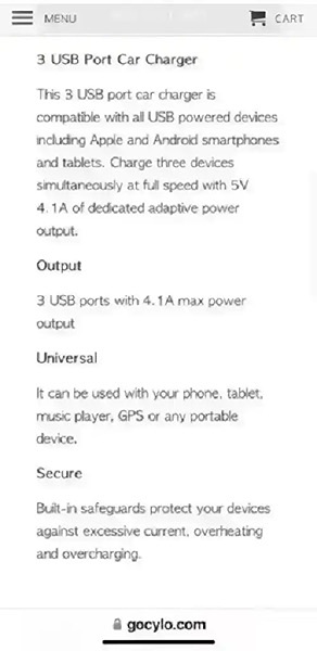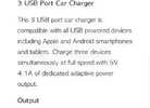 This 3 USB port car charger is compatible with all USB powered devices including Apple and Android smartphones and tablets. Charge three devices simultaneously at full speed with 5V 4.1A of dedicated adaptive power output.