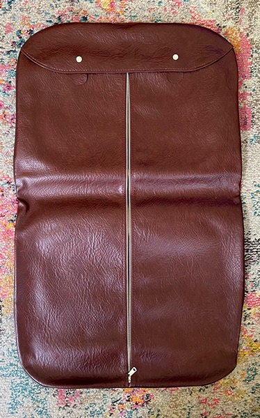 Faux leather garment bag with large pocket on the back for extra storage. Approx. 37" x 23"...$12 firm