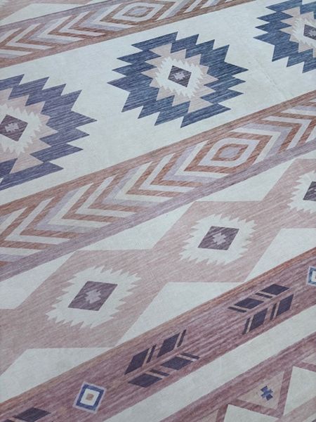 Mentzer Southwestern Machine Woven Polyester Indoor / Outdoor Area Rug in Ivory/Blue. Rectangle 8' x 10'