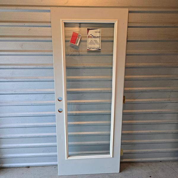 Fiberglass Exterior Door 32 x 80 - Full Lite Low-E Glass Right Hand Swing. Located in The Woodlands 77381. Crossroad kuykendahl road and research forest drive. Delivery is available for a fee.