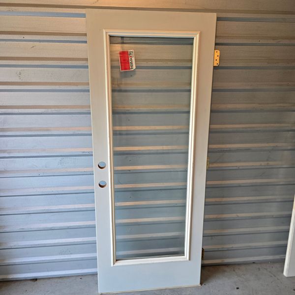 Fiberglass Exterior Door 32 x 80 - Full Lite Low-E Glass Right Hand Swing. Ready to be painted. Located in The Woodlands 77381. Crossroad kuykendahl road and research forest drive. Delivery is available for a fee.