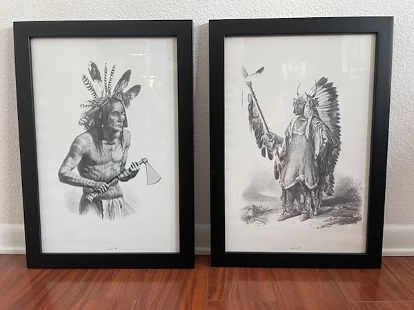 Two Art Prints from Karl Bodmer (original 1841) - Native Americans. Pictures with frames.