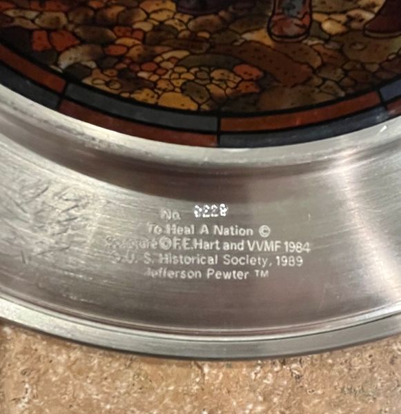 Jefferson Pewter Plate To Heal A Nation 1989 Vietnam War Memorial