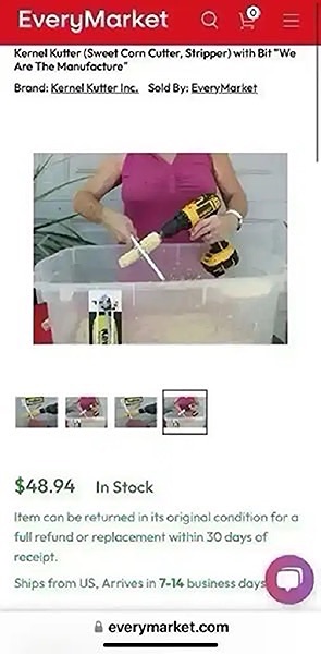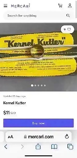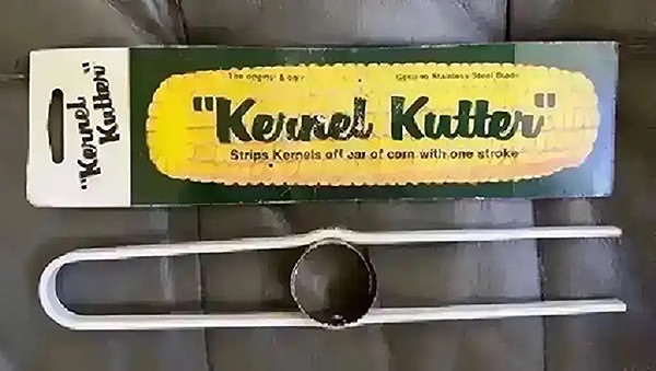 Strips kernels off ear of corn with one stroke!  New from Williams-Sonoma!  Great for making corn salads etc…$10 firm