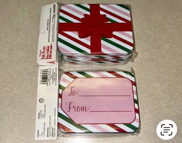 12 total Christmas-themed gift card tins, 3 in each pattern. $5/set or $15/all. New in package from smoke free home.