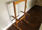 31 Inches tall and 15 inches wide. Originally was a TV tray stand, but I used it to display a quilt pattern. Asking $2.00.