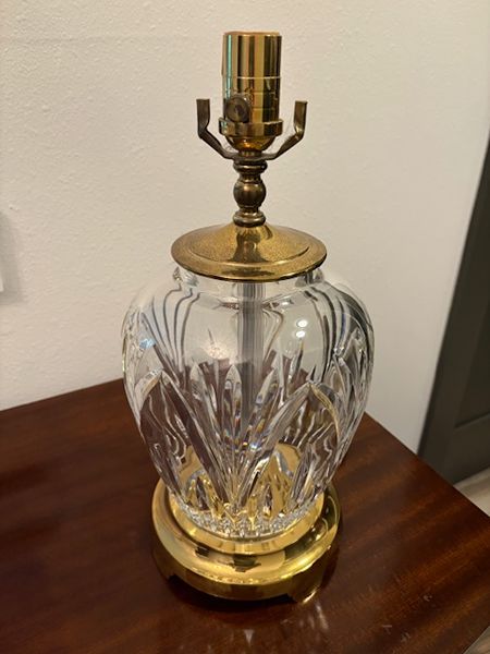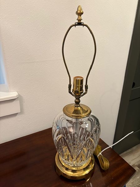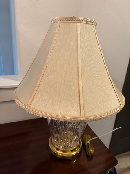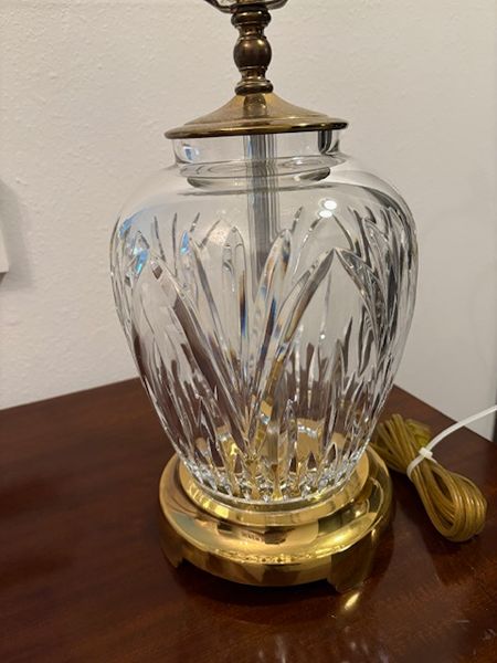 Beautiful Antique Waterford Crystal and Brass Lamp with original Waterford Lampshade.