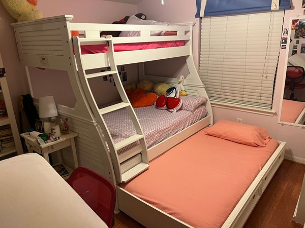 This was our girls' BEST piece of furniture. It helped our children enjoy a few sleep-overs. We had up to 5 children sleep pretty comfortably, since these beds are a nice combo of: Full; TwinXL, Twin (new mattress).