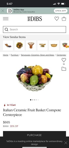 Italian glazed ceramic fruit basket figure Hand & Paint made. Very Realistic