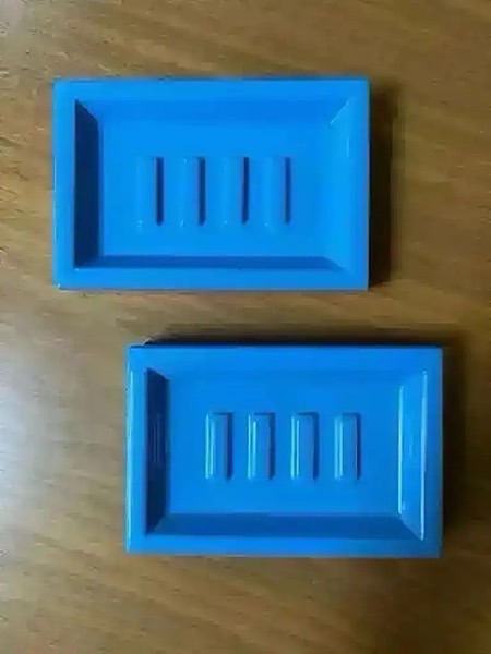 Two soap dishes by Hold Everything. Originally purchased from Pottery Barn. I believe these are resin or acrylic 6” x 4” x 1”…$5 total, firm