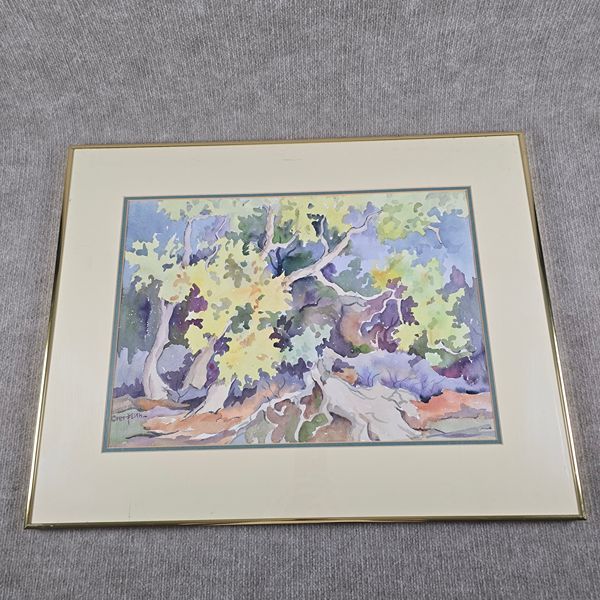 Original watercolor painting titled “Sycamore Trees” by artist Elsie M. Faith (1987) 22x28. Located in The Woodlands 77381. Crossroad kuykendahl road and research forest drive.