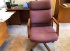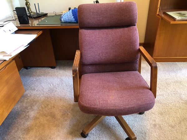 Chair is approximately 40 inches tall and 23 inches wide. Swivel base on rollers. Small stain on seat. Asking $10.00.