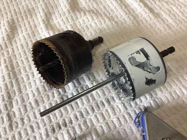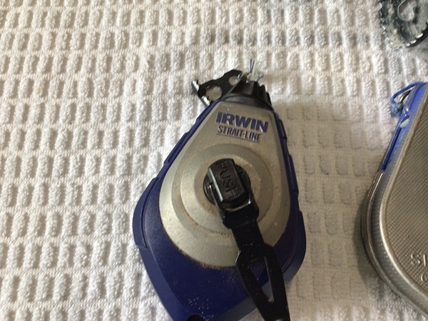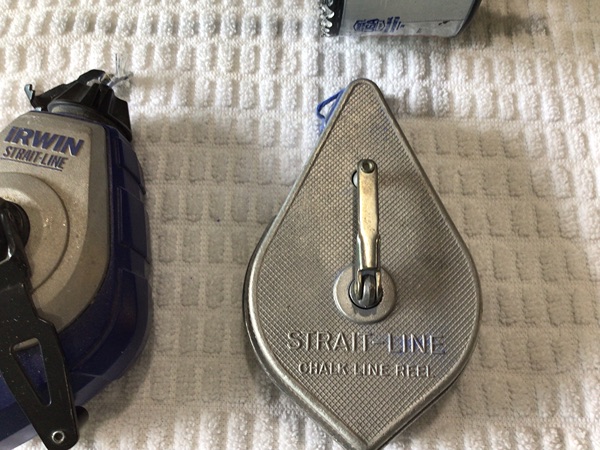 Two chalk line reels and 2 drywall hole saws