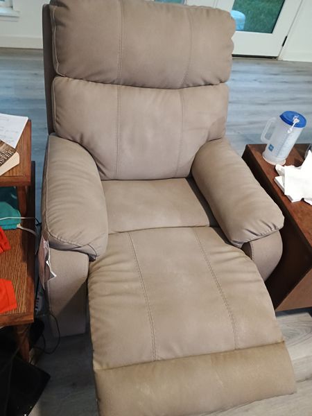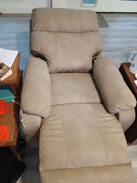 Next Gen Dura-pella adjustable recliner, Style 4070912 Ashley Furniture Faux Leather, one touch hand control power button with adjustable positions. attached cushion. Gentle lift and tilt positions. Used less than one year at a smoke free home in The Woodlands.
