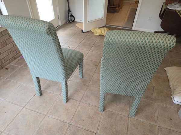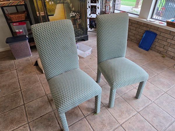 Two high back turqoise dining charirs, very good condition