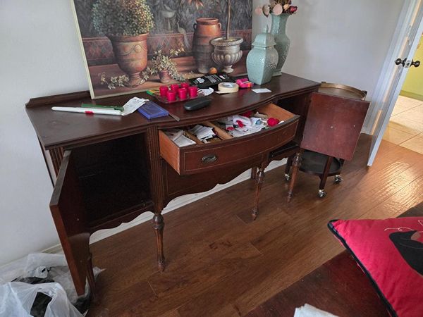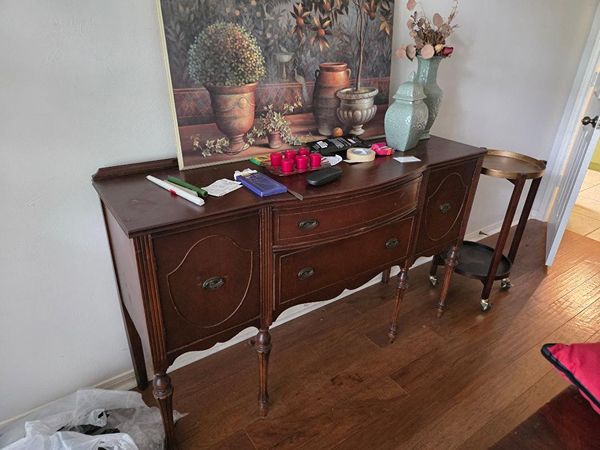 Top needs light refinish. 60" wide x 20" deep x 38" high.