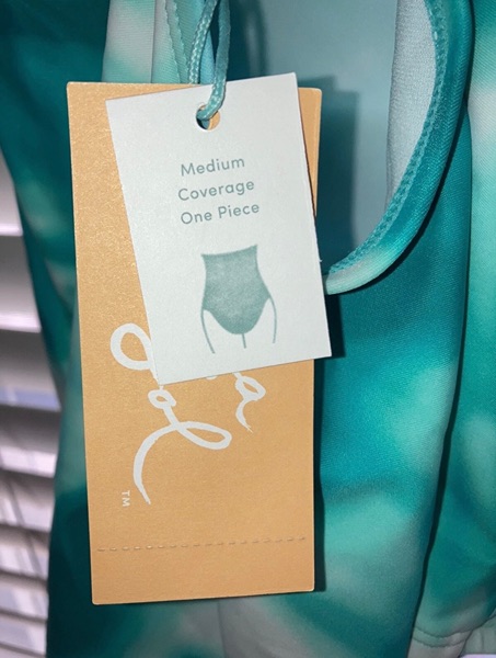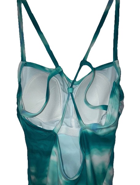 Kona Sol brand blue/green tie dye swimsuit, size small (4-6). Medium coverage, sewn in bra, straight neckline, cross back. New with tags from smoke free home. $10