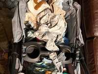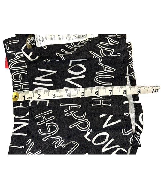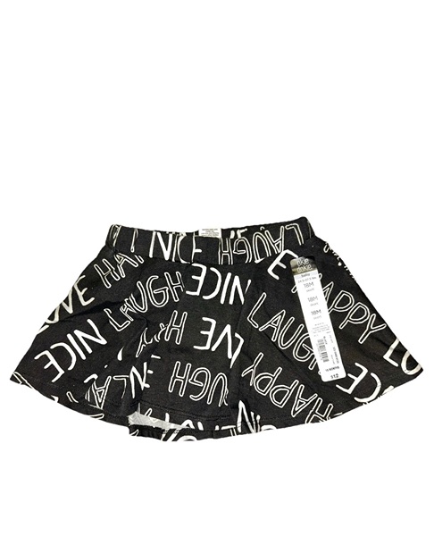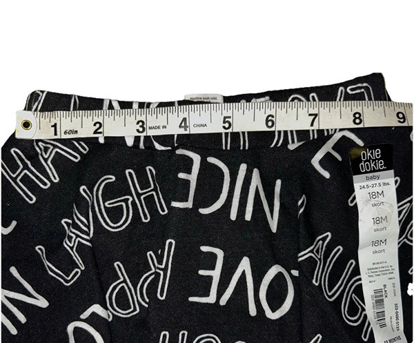 Okie Dokie baby girl skirt, size 18 months, with sewn in diaper cover. Features words happy, nice, love, laugh in repeating graphic pattern. Cotton/polyester blend. New with tags from smoke free home. $8