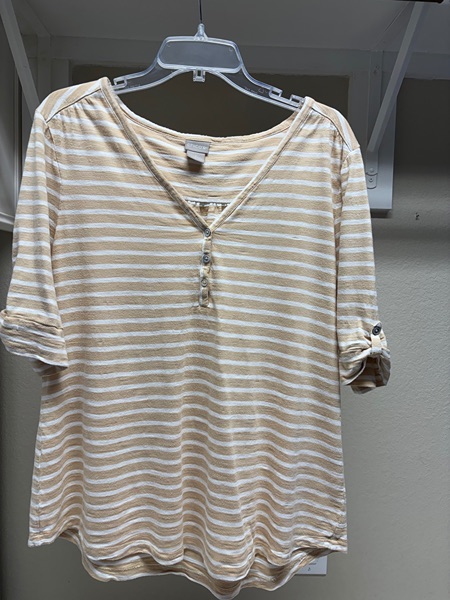 Chicos Beige & White Strip Top