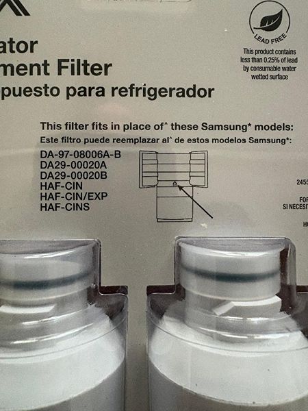 Two Samsung FMS2 refrigerataor filters. See the photo to determine if it will fit your Samsung.