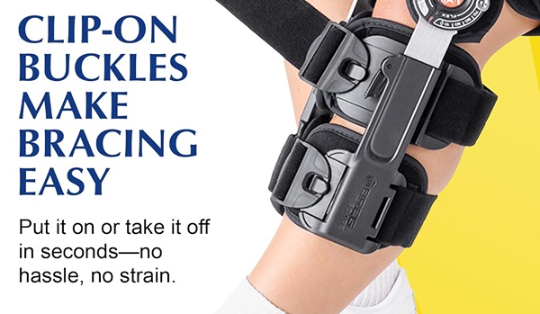EASY APPLICATION WITH QUICK CLIP BUCKLES: Secure your brace in seconds. Designed to improve comfort and compliance with daily use, even during tender post-surgery stages.
