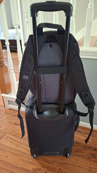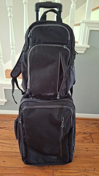 22' including wheels with matching backpack, both pieces of luggage expand additional 2 inches